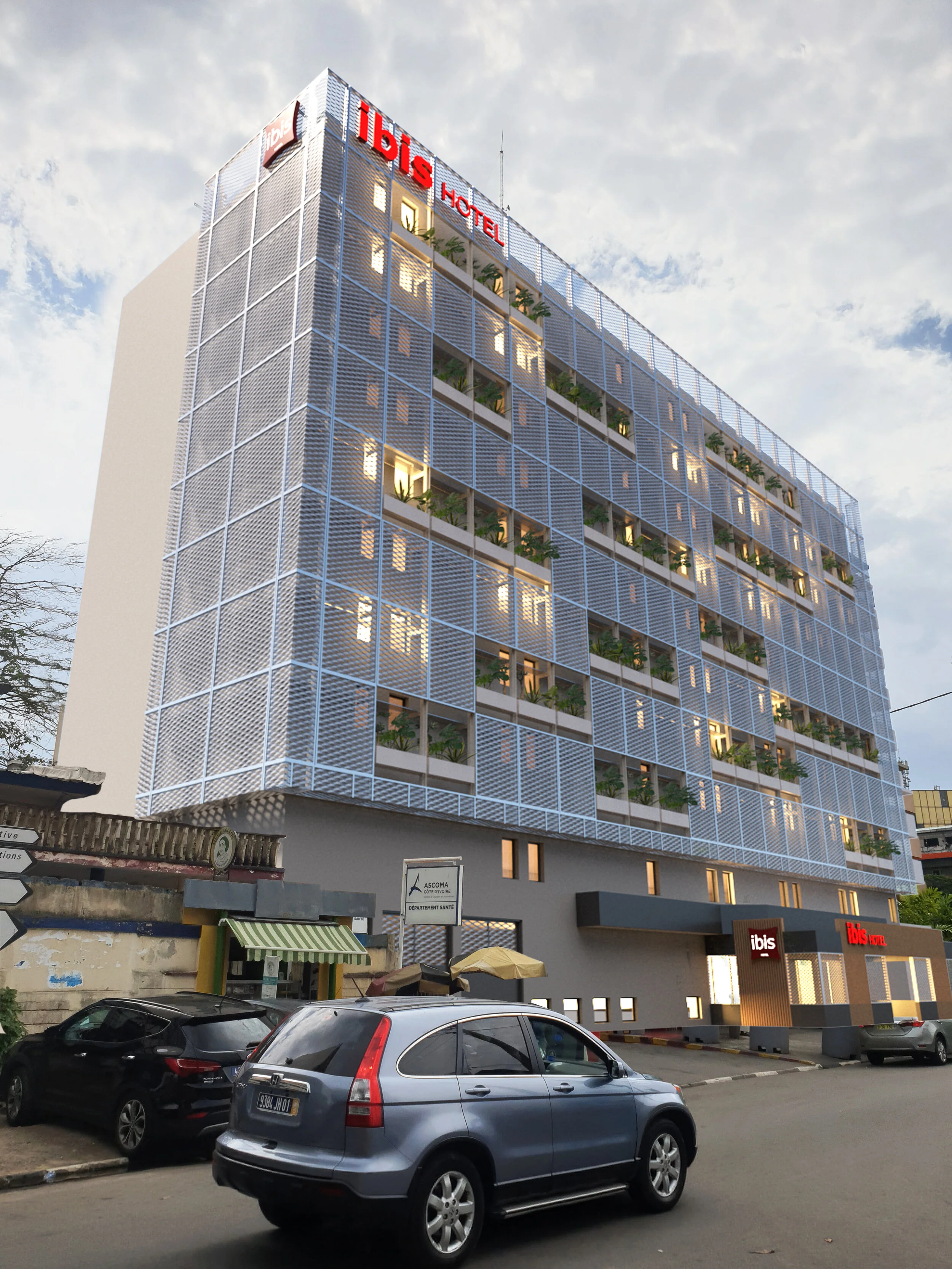 By spotlighting the facade's perforated metal with dynamic green light, we reflected the new logo and color scheme, infusing the hotel with a vibrant, modern edge.